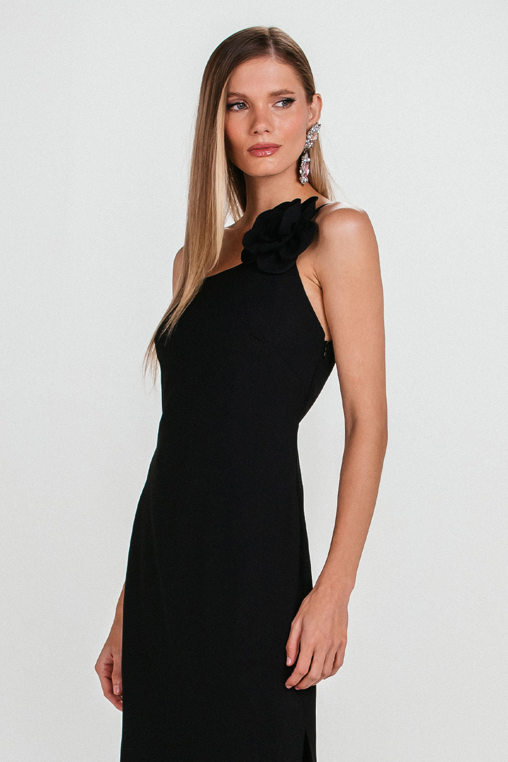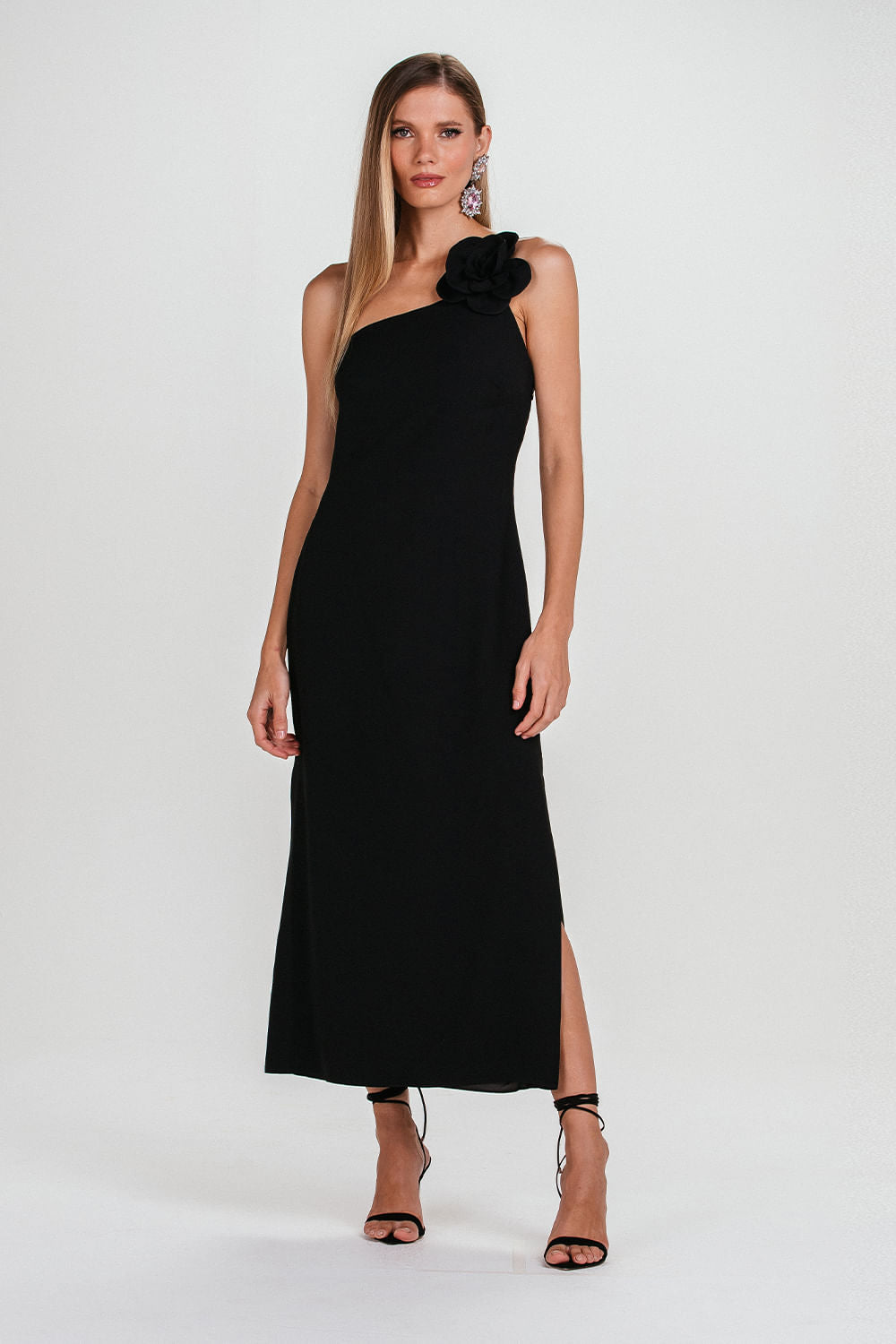 O nosso VESTIDO NICOLE vai trazer muita personalidade e elegância minimalista para o look! Feito em CREPE DE ACETATO, vem numa modelagem acinturada, de saia reta midi com uma fenda poderosa na lateral. Já na parte de cima um decote de um ombro só e aplicação de flor 3D, além de decote na parte das costas, dando ainda mais modernidade para um jantar especial!