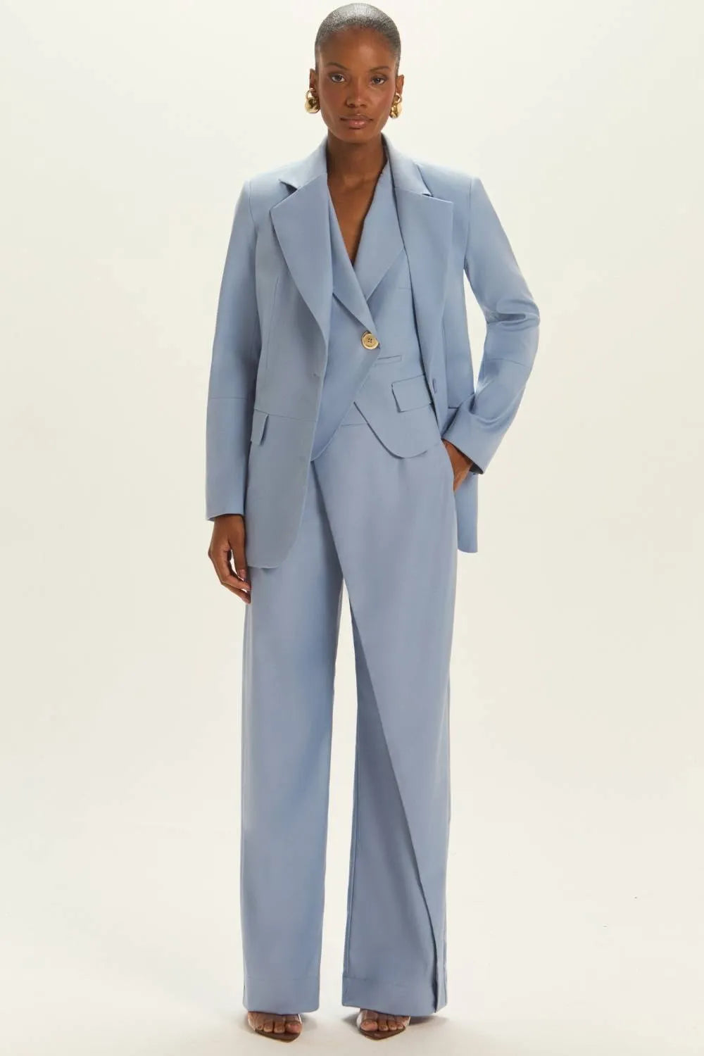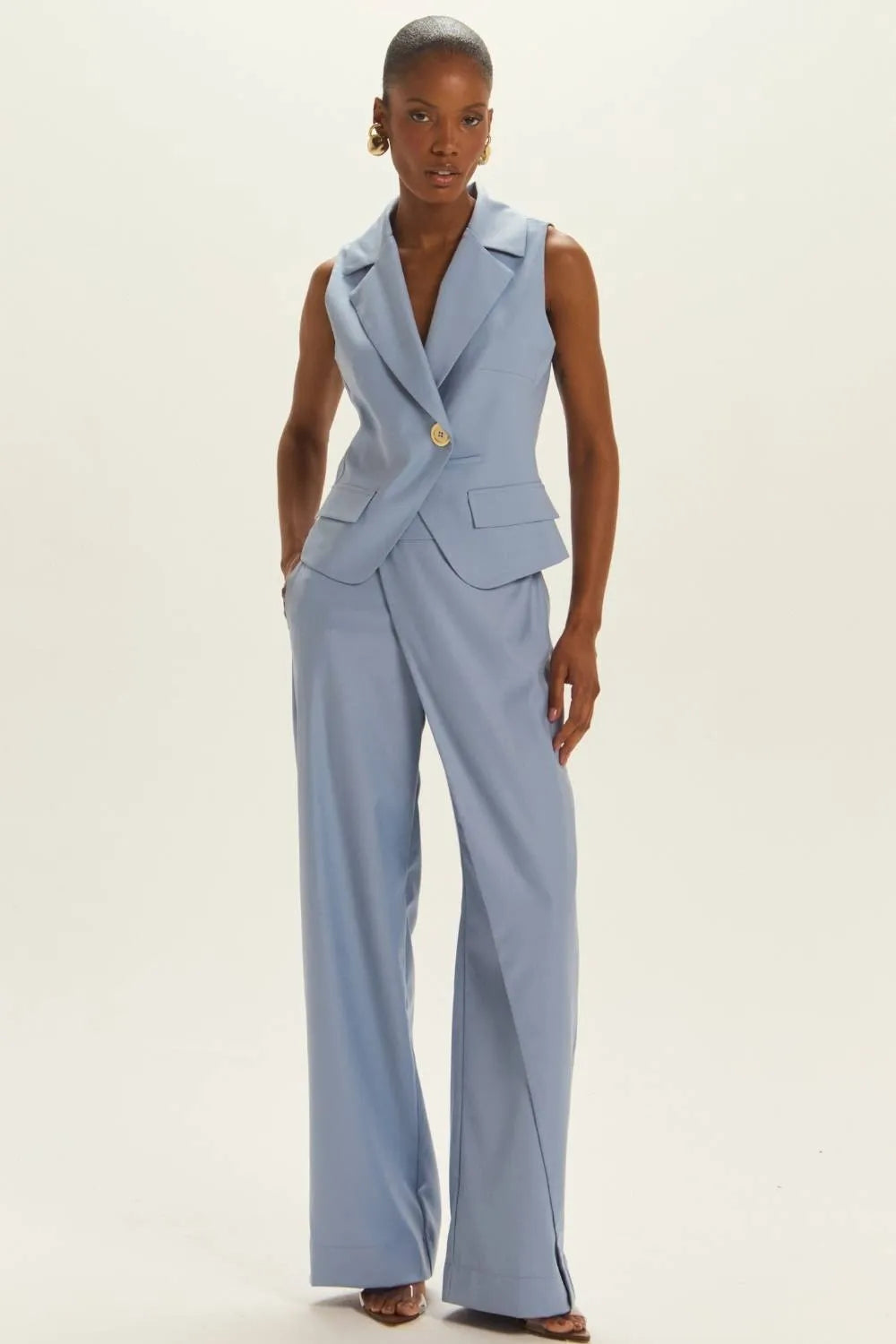 CONJUNTO PAMELA COLETE + CALÇA AZUL DENIN