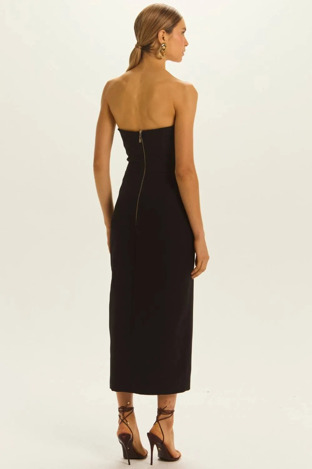 O Vestido Midi Erica é confeccionado em tecido plano, possui caimento ajustado, modelo coquete dress estruturado, decote coração, comprimento midi, detalhe de sobresaia removível, fechamento por zíper , acabamento premium.