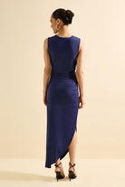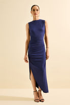 Vestido longo, confeccionado em tecido com leve elasticidade que proporciona caimento ajustado ao corpo. Possui modelagem sem mangas e detalhe franzido lateral, que valoriza a silhueta. O design clean transmite elegância e sofisticação, ideal para ocasiões especiais. Parte traseira lisa, também sem mangas, com caimento justo e detalhe franzido discreto na região do quadril, garantindo acabamento refinado. O modelo segue a proposta minimalista, destacando a silhueta de forma elegante.