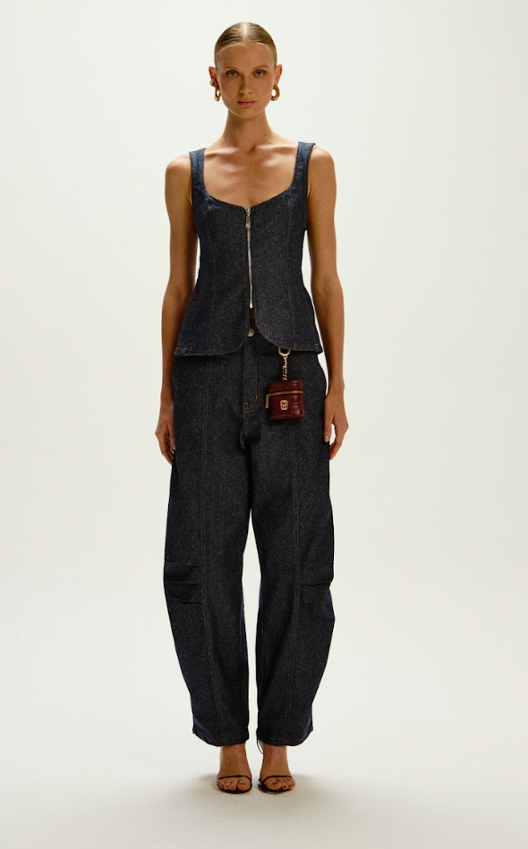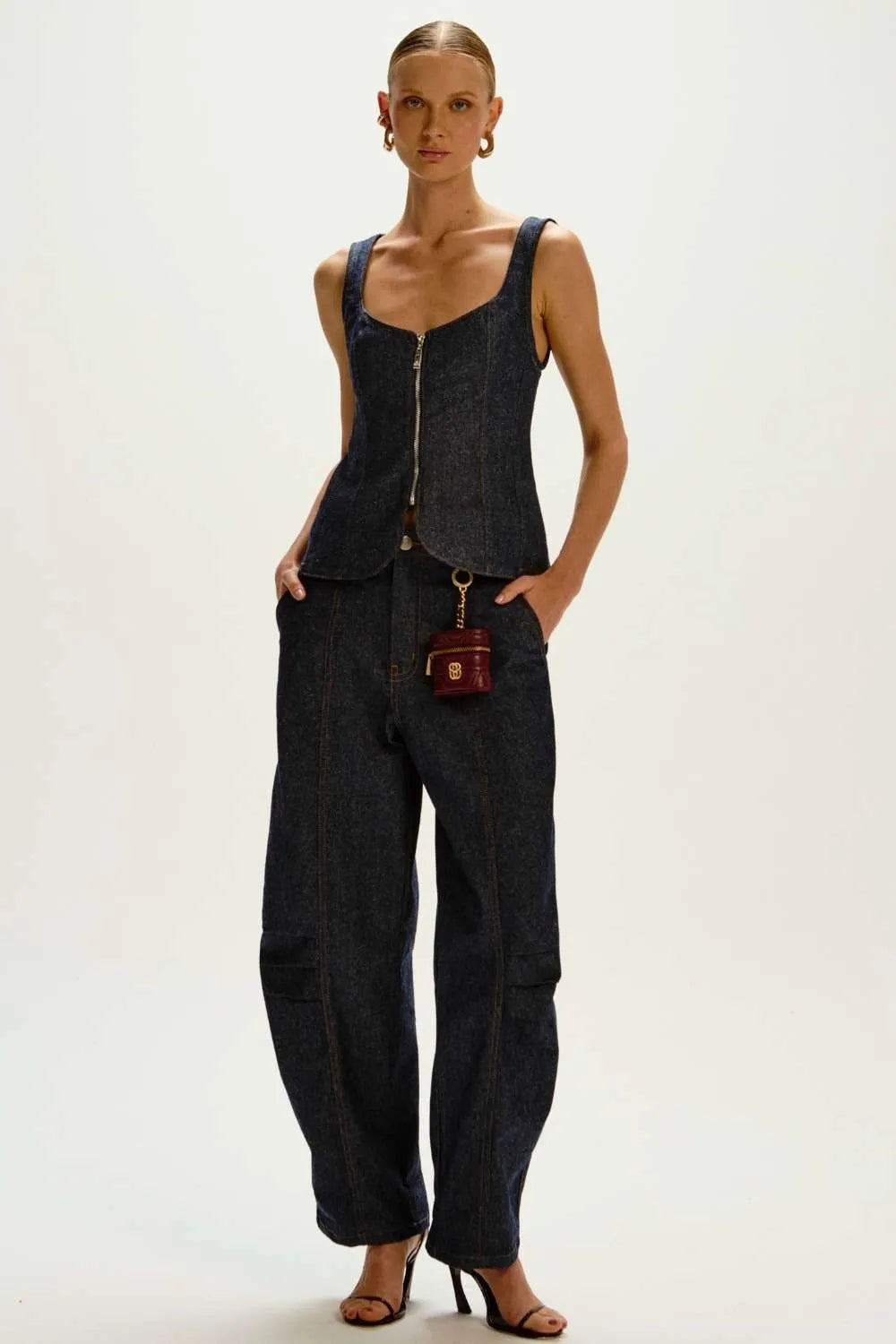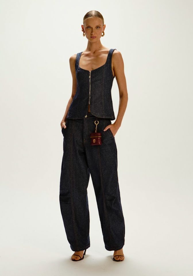 A Calça Jeans Lara é confeccionada em jeans 100% algodão, possui modelagem BALLON, caimento amplo com barra levemente ajustada, cós com passantes, fechamento frontal por zíper e botões , e acabamento pespontado.