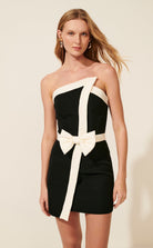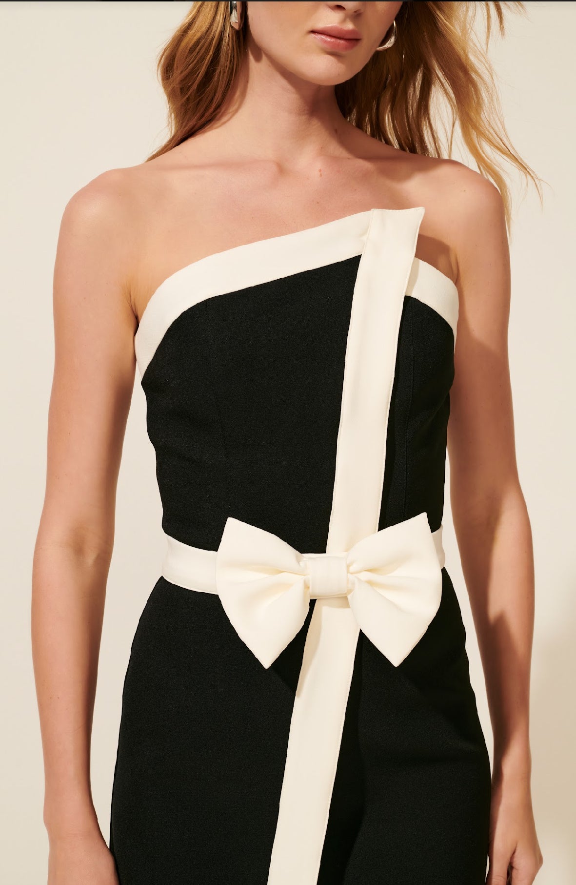 O Vestido Ivone possui elástico de silicone para melhor sustentação, caimento acinturado, decote reto assimétrico com laço destacável, fechamento posterior por zíper, comprimento curto e acabamento premium.