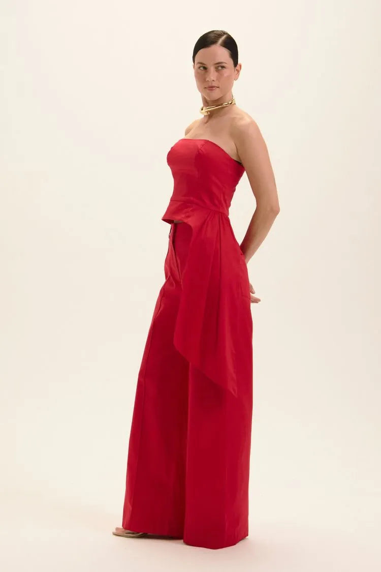 O Corselet Natali é a peça statement que realça a silhueta com elegância e presença. Sem alças e estruturado, ele possui recorte marcado na cintura que cria um efeito de cauda assimétrica, trazendo movimento e um toque contemporâneo ao visual. O zíper destacável nas costas garante praticidade e um acabamento impecável.