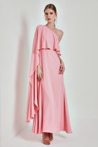 Vestido longo de um ombro só, com capa fluida sobreposta ao busto e caimento assimétrico, criando movimento e leveza. A parte inferior apresenta modelagem reta, elegante e minimalista, equilibrando a fluidez da parte superior com um visual mais clean e sofisticado. Nas costas, a capa continua acompanhando o desenho do vestido, caindo de forma fluida e elegante sobre o ombro e a lateral do corpo. A base reta mantém a sobriedade do modelo, valorizando o detalhe dramático da sobreposição em camadas. Ideal para eventos formais ou ocasiões especiais que pedem um toque de sofisticação com ar contemporâneo.