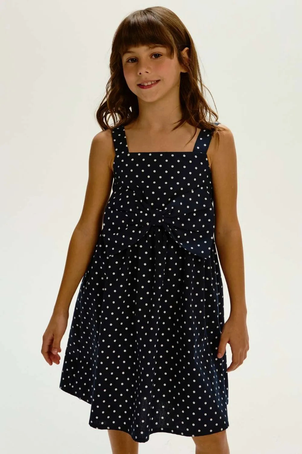 O design da peça é destacado pelos detalhes, que conferem um toque romântico e cheio de graça, enquanto a estampa de poá traz um ar feminino e elegante à peça. Sua modelagem ampla e fluida garante total conforto e versatilidade, tornando-o ideal para diferentes ocasiões. Com um equilíbrio perfeito entre charme e praticidade, este vestido é indispensável no guarda-roupa das pequenas!"