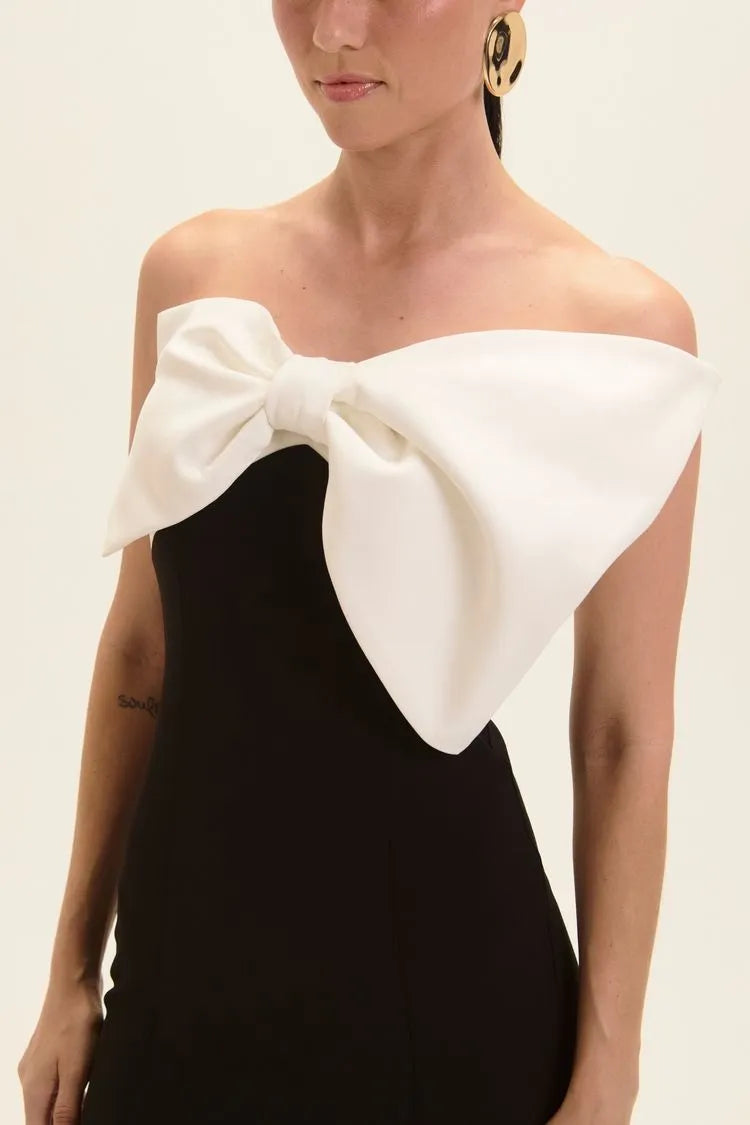 Styling tip: Use com sandália de salto fino ou scarpin para um look clássico e marcante. Aposte em acessórios minimalistas para manter o laço como foco principal da produção. Uma peça pensada para ocasiões especiais com estilo e intenção.