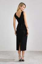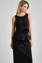 Elegância e classe definem esse vestido midi de alfaiataria, perfeito para ocasiões que pedem sofisticação. A peça possui modelagem ajustada ao corpo com recorte peplum na cintura, que valoriza a silhueta de forma discreta e refinada. O destaque fica por conta da aplicação de flor estruturada na lateral, um toque moderno e feminino que eleva o visual. Nas costas, o vestido apresenta decote "V" e fechamento por zíper invisível, além de fenda na saia que garante mobilidade e charme. Ideal para casamentos civis, eventos sociais ou produções executivas elegantes.