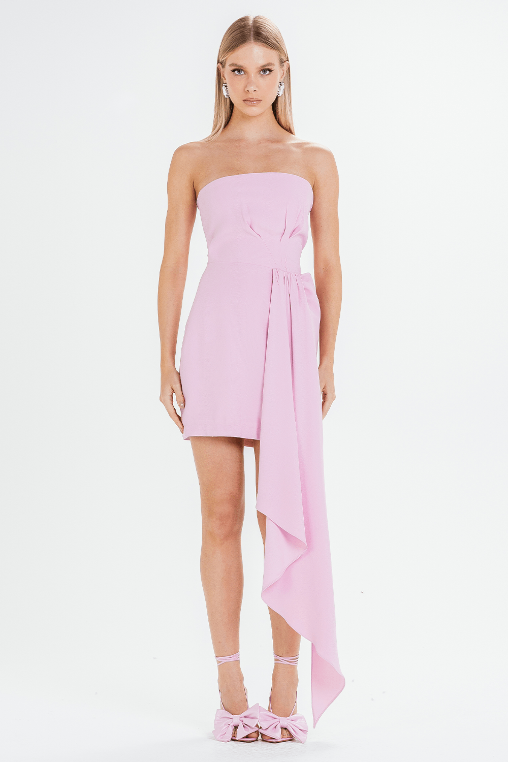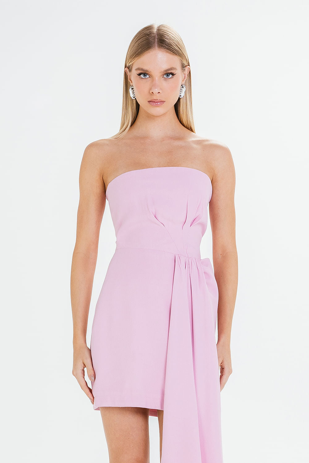 O nosso VESTIDO EVINA vai ser perfeito para quem busca uma elegância atemporal para eventos mais sofisticados! Feito no encorpado CREPE PATOU, possui comprimento curto, com modelagem mais slim, decote reto sem alças e fecho em zíper. Mas o toque especial fica por conta do tecido drapeado na diagonal em formato cascata, trazendo aquela informação de moda #muitocharth!